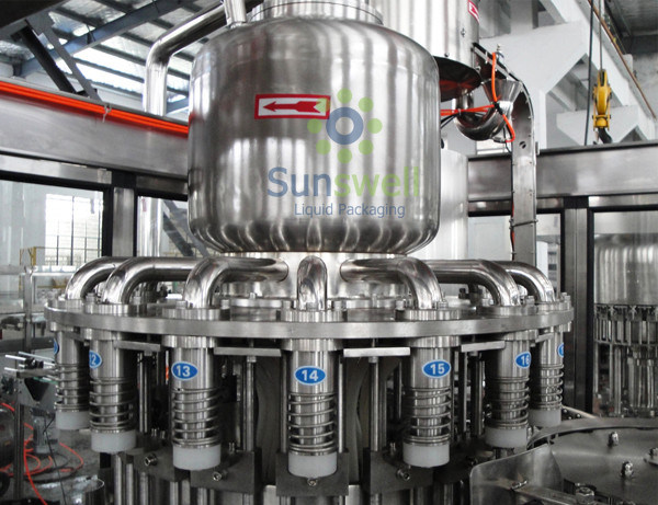 La máquina del relleno en caliente es el monoblock in-1 del estándar 3. Pero a la condición de la producción especial, otro enjuague del desinfectante podría ser añadido, que es el monoblock 4 in-1. El sistema ha considerado completamente las características de la bebida (tales como espumejear de la bebida del té y del jugo mezclado) y el requisito técnico del relleno en caliente.